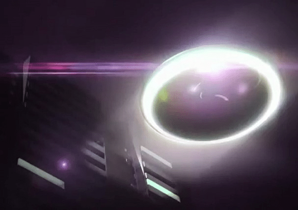 다가오는가 싶더니 어느새 아파트만한 크기가 되어 눈앞의 상공에 오렌지 색의 강렬한 빛을 발하며 떠있는 거대한 원추형 물체.